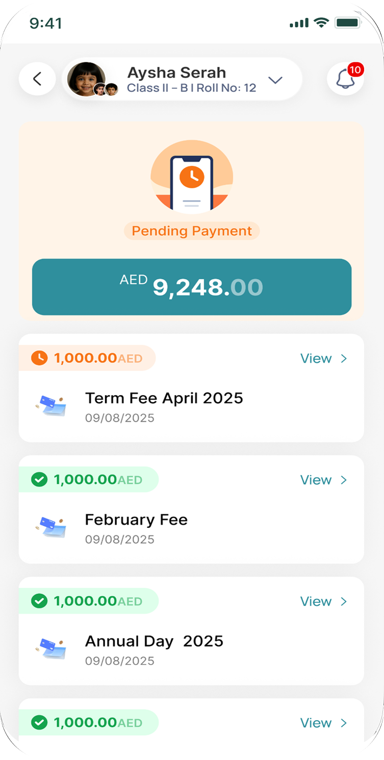 Manage and track parent inquiries from the first contact to admission through an organized system. Schools can easily monitor inquiries, follow-ups, and admission opportunities.