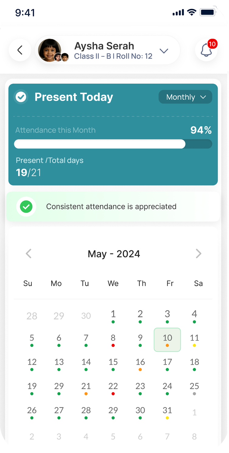 A dedicated portal that helps parents stay connected with their child’s academic activities and school updates. Parents can easily track attendance, fees, exams, and student performance from one platform.